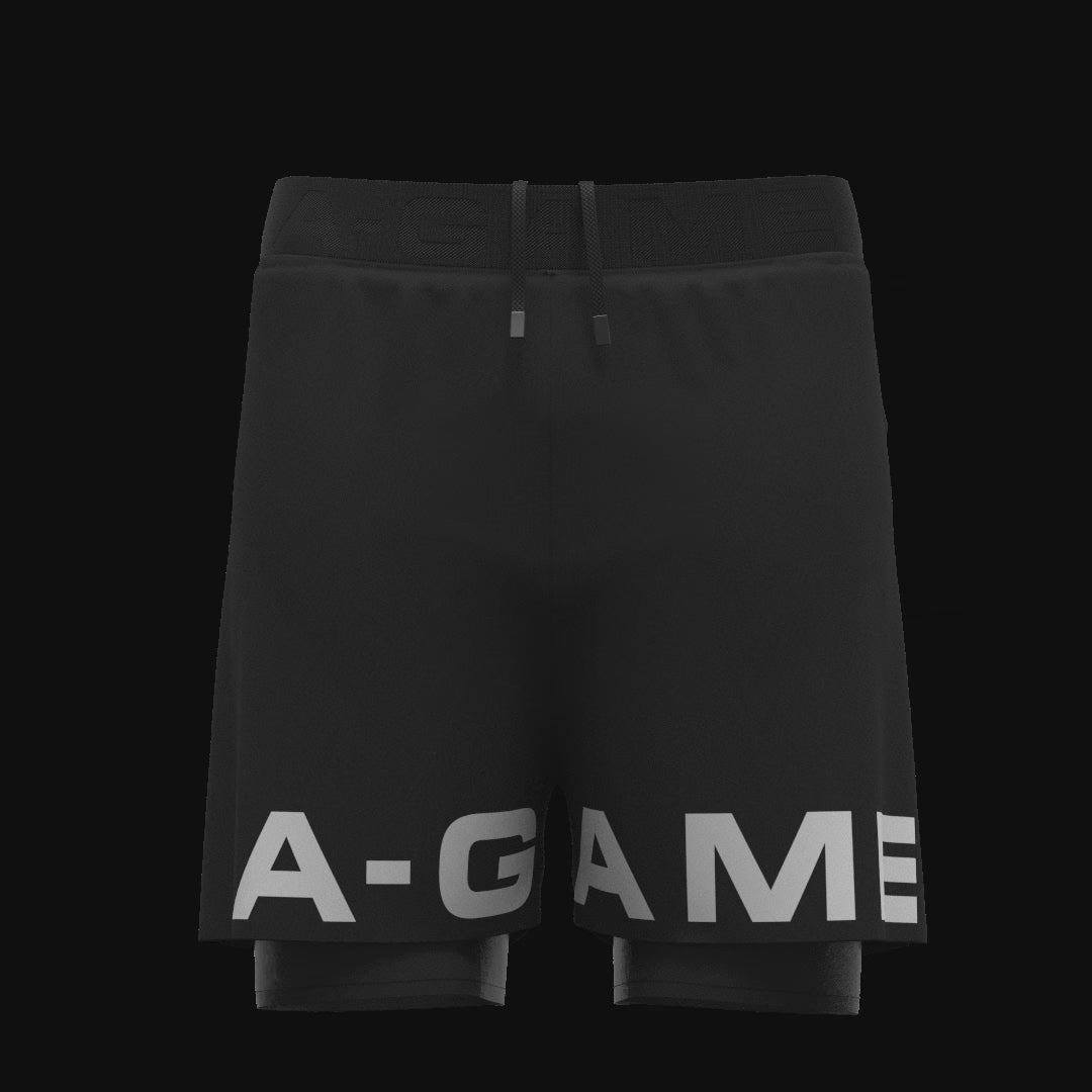 MENS A-GAME 2 IN 1 TRAINING SHORTS - BLACK