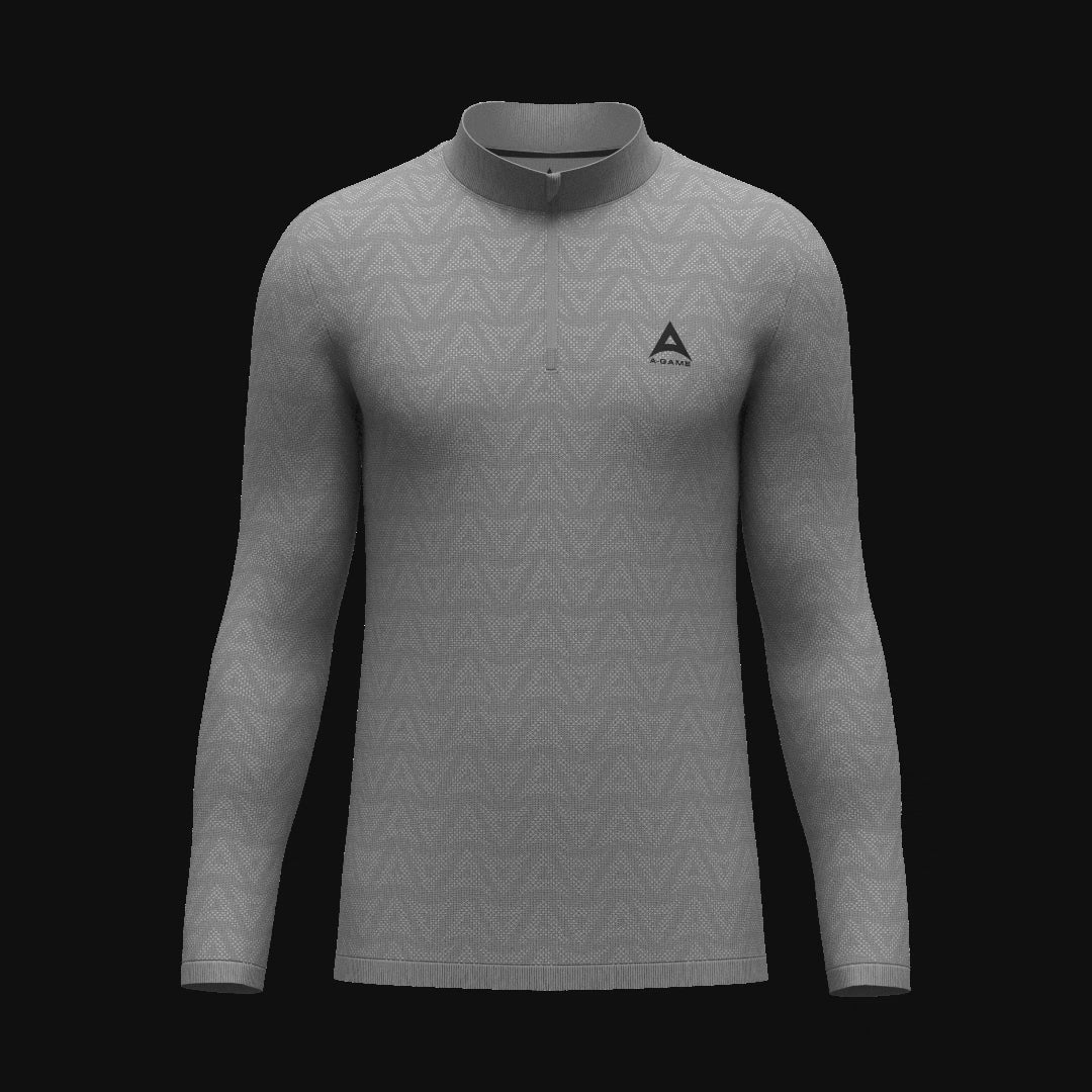 HAUT À MANCHES LONGUES D'ENTRAÎNEMENT AVEC LOGO SANS COUTURE A-GAME POUR HOMMES - GRIS ACIER