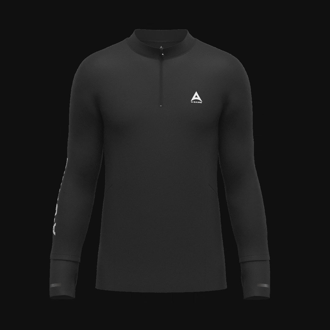 MENS A-GAME PERFORMANCE LONG SLEEVE TRAINING TOP in pure black.