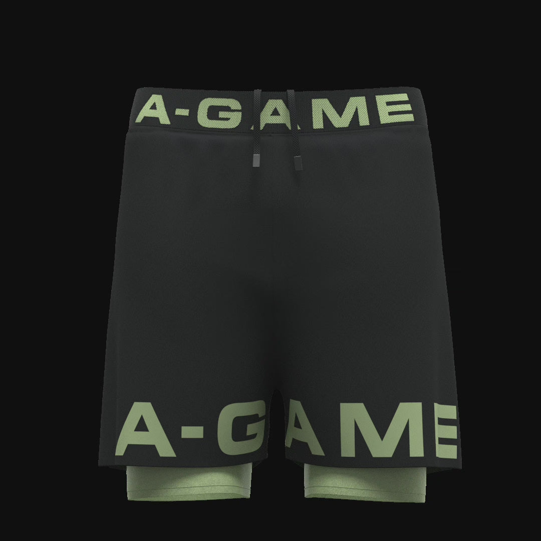 MENS A-GAME 2 IN 1 TRAINING SHORTS - BLACK/LIME