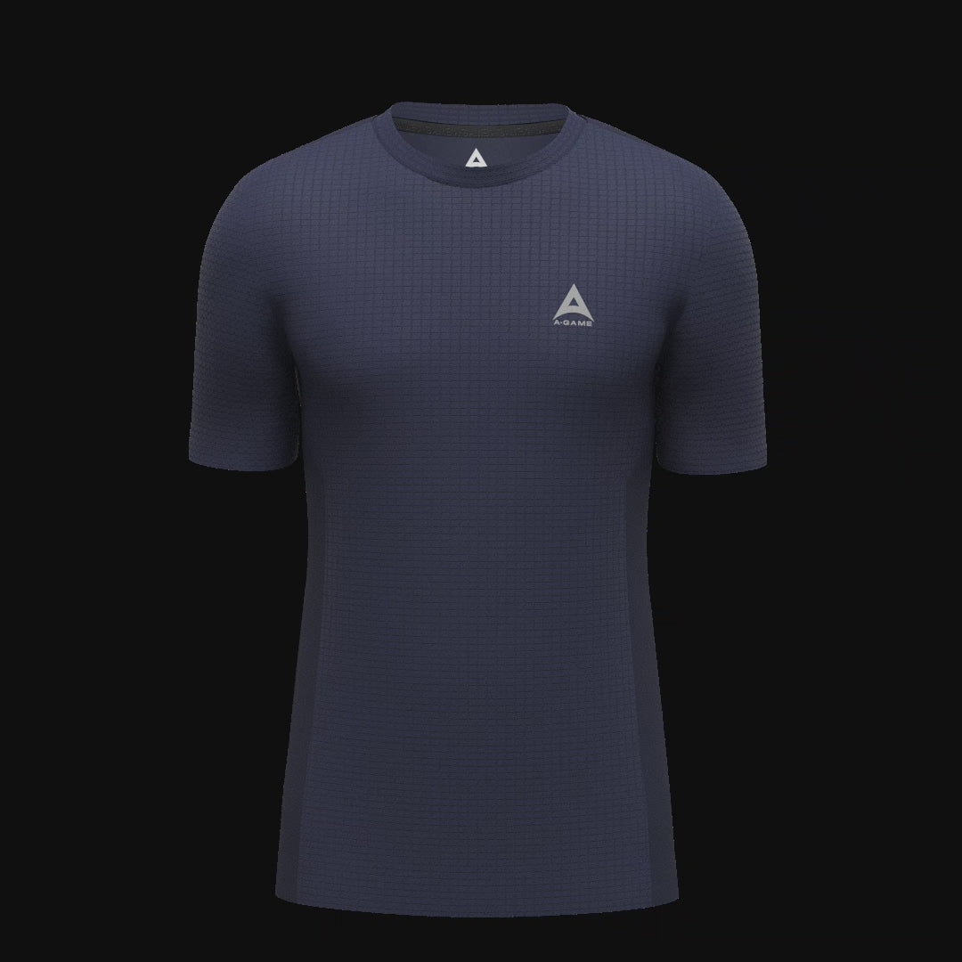 MENS A-GAME PANELLED TRAINING TSHIRT in navy blue.